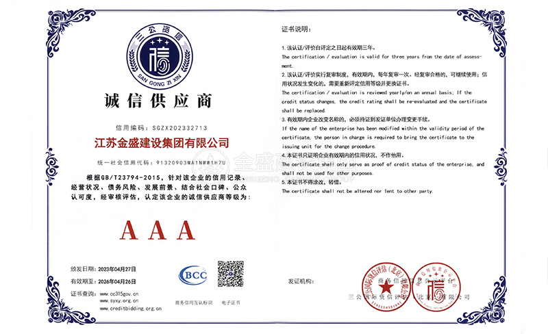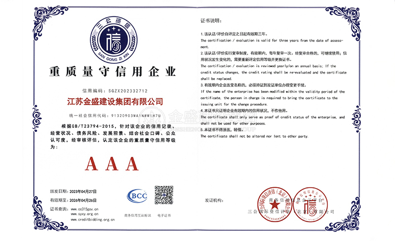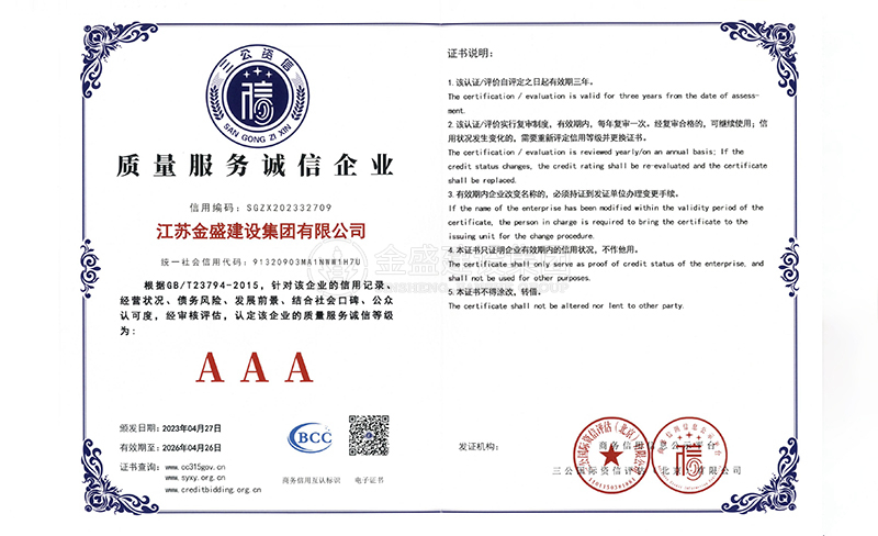 • 2007年江蘇省質(zhì)量信得過安全穩(wěn)定施工企業(yè)